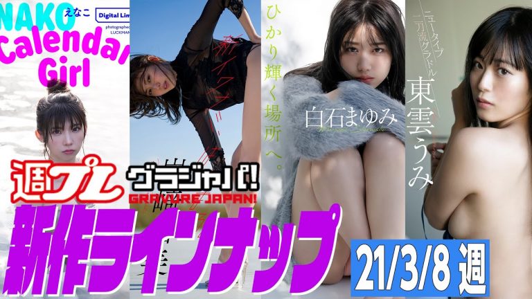 週プレグラジャパ!2021年3月8日週ラインナップ!えなこ「Calendar Girl」、岩﨑名美「新イワナミ、はじまる」、白石まゆみ「ようこそ、ひかり輝く場所へ。」、東雲うみ「ニュータイプ二刀流グラドル」。