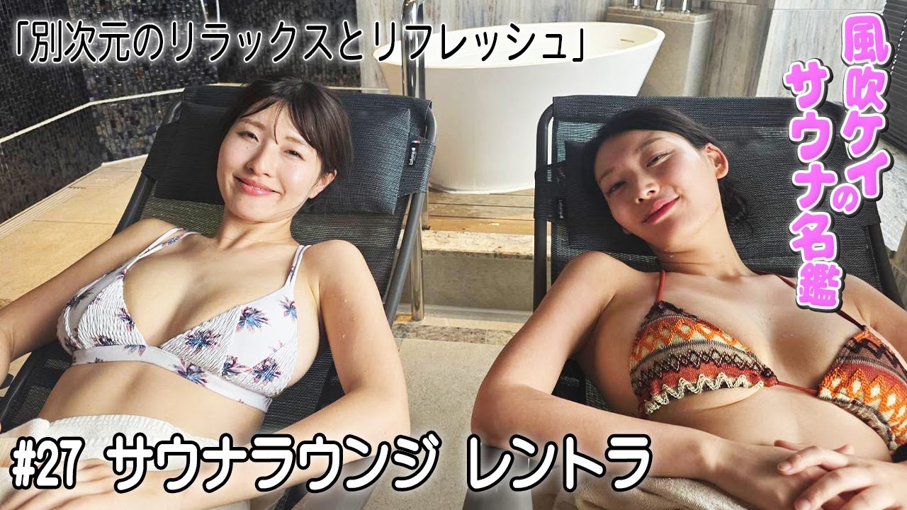 サウナラウンジ レントラ!サウナ・シャワー・水風呂入浴・内気浴動画!原つむぎさん、風吹ケイさんが水着姿を披露!