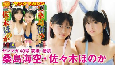 2024年10月28日(月)発売の週刊ヤングマガジンNo.48表紙・巻頭グラビアに桑島海空さん、アイドルグループ「アップアップガールズ(2)」メンバー・佐々木ほのかさんが登場!グラビアメイキング動画!ハロウィンコス×水着姿を披露!