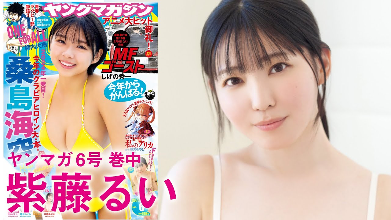 2024年1月5日(金)発売の週刊ヤングマガジンNo.6巻中グラビアに子役、塾講師、グラビアアイドルの経歴を持つ・紫藤るいさんが初登場!グラビアメイキング動画!ニット帽×シャツ×水着姿、眼鏡×タイトスカート姿からの胸元オープン、パーカー×水着姿等を披露!