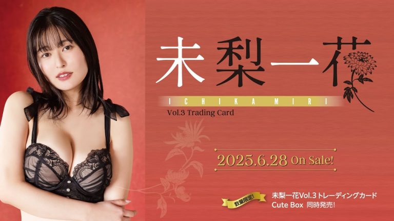 2025年6月28日(土)に「未梨一花Vol.3」トレーディングカードが発売されます!主なレアカードとして、ピンスポビキニカード、ネイルカード、オフショットチェキ、直筆サインカード、直筆サイン&生キスカード、ストッキングカードなどがあります! グラビア動画!水着姿を披露!